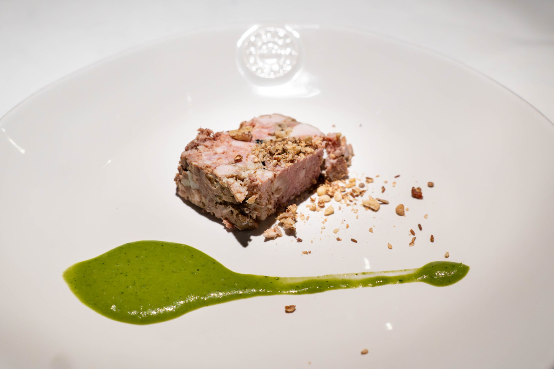 While rooted in the French pâté de campagne, it centered around raw sausage (naem) from Kumamoto’s “Running Pork,” fashioned into a terrine.