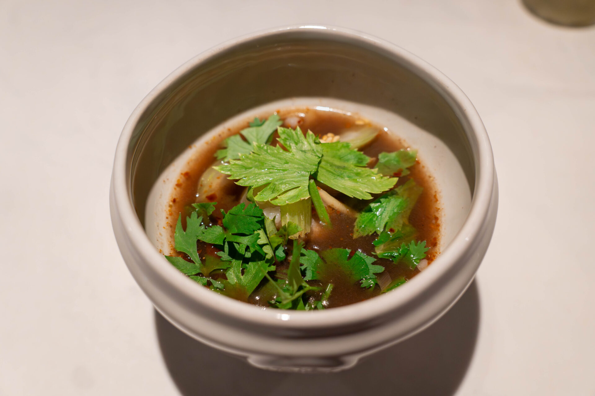 Vegetables like celery were added, topped with cilantro for freshness and textural contrast. The more you drank, the more the heat and sourness spread warmly through the body.