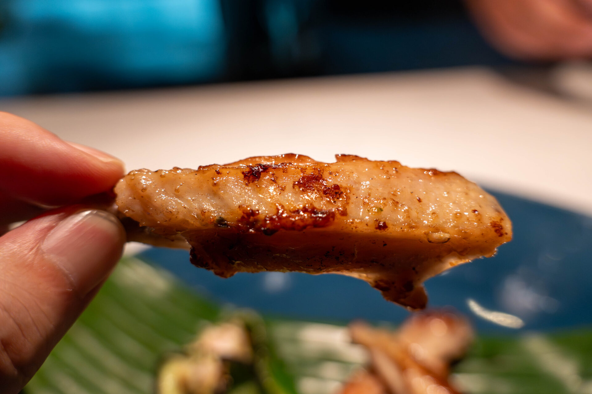 Crispy fried saury was placed on top for contrasting texture. The miso, based on Kumamoto’s “Himiko” and layered with multiple Thai fermented seasonings, added umami and complexity that lightened the fish’s rich fat.