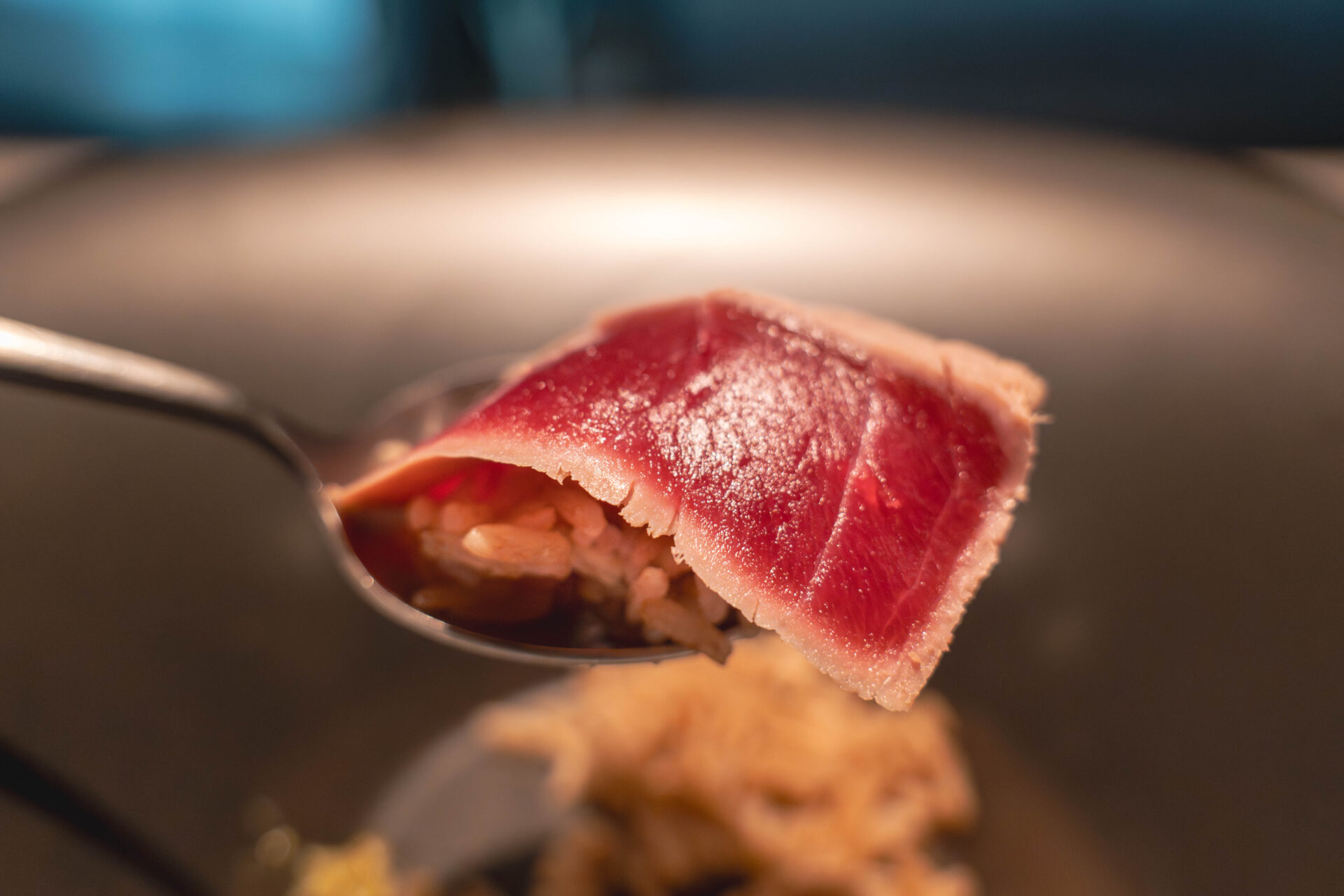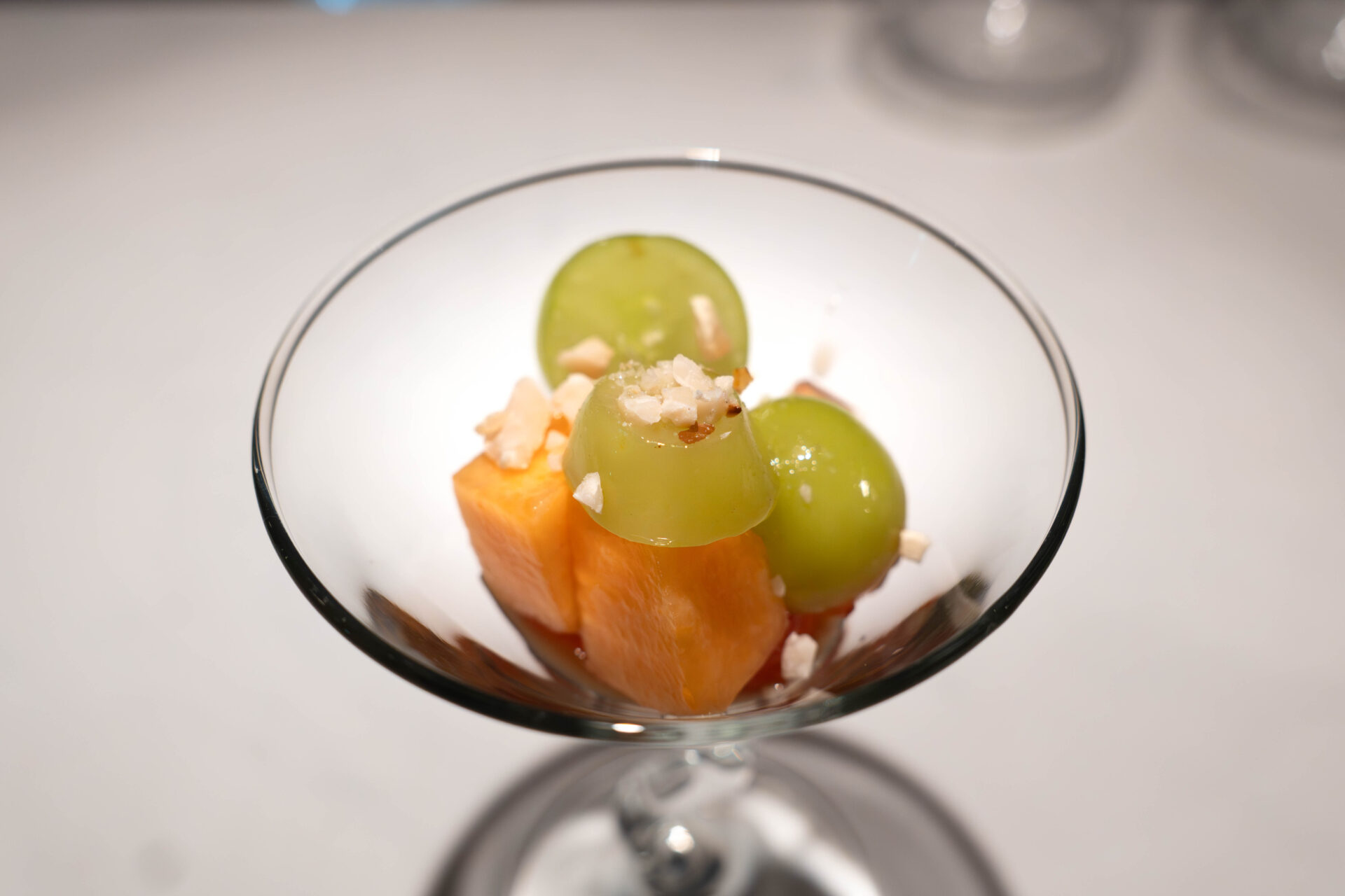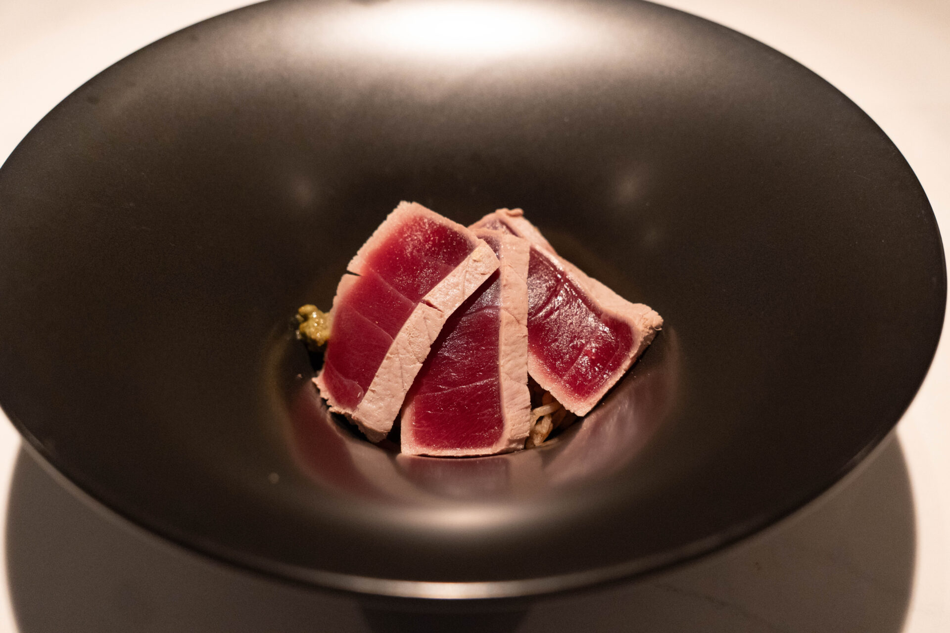 Of the three tuna slices, I noticed the chef injecting something into the last one with a needle. When asked to guess after tasting, I couldn’t. The answer was detora orange—an intensely aromatic fruit, hidden like a secret accent.
