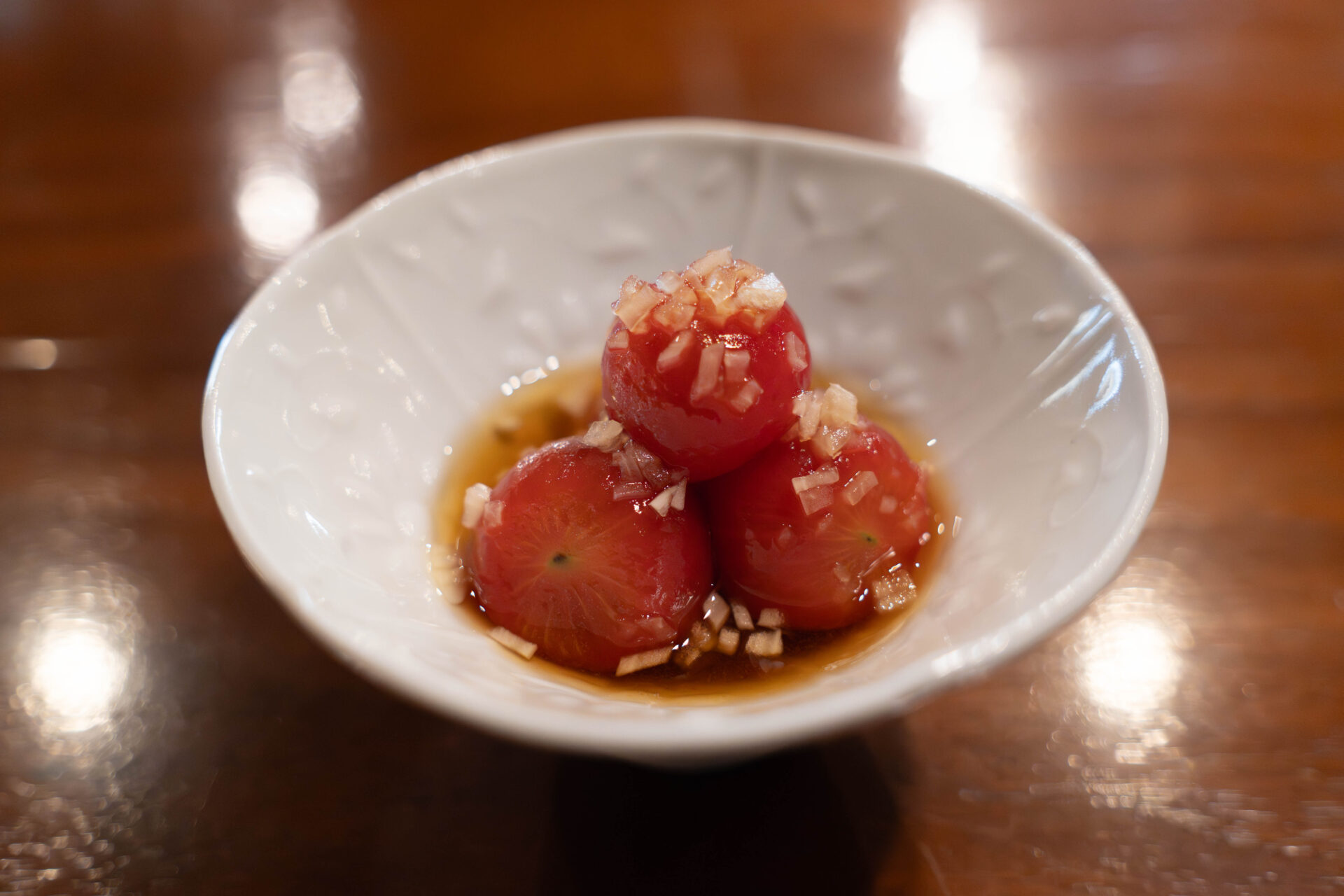 Next came a refreshing small bowl of marinated mini tomatoes.