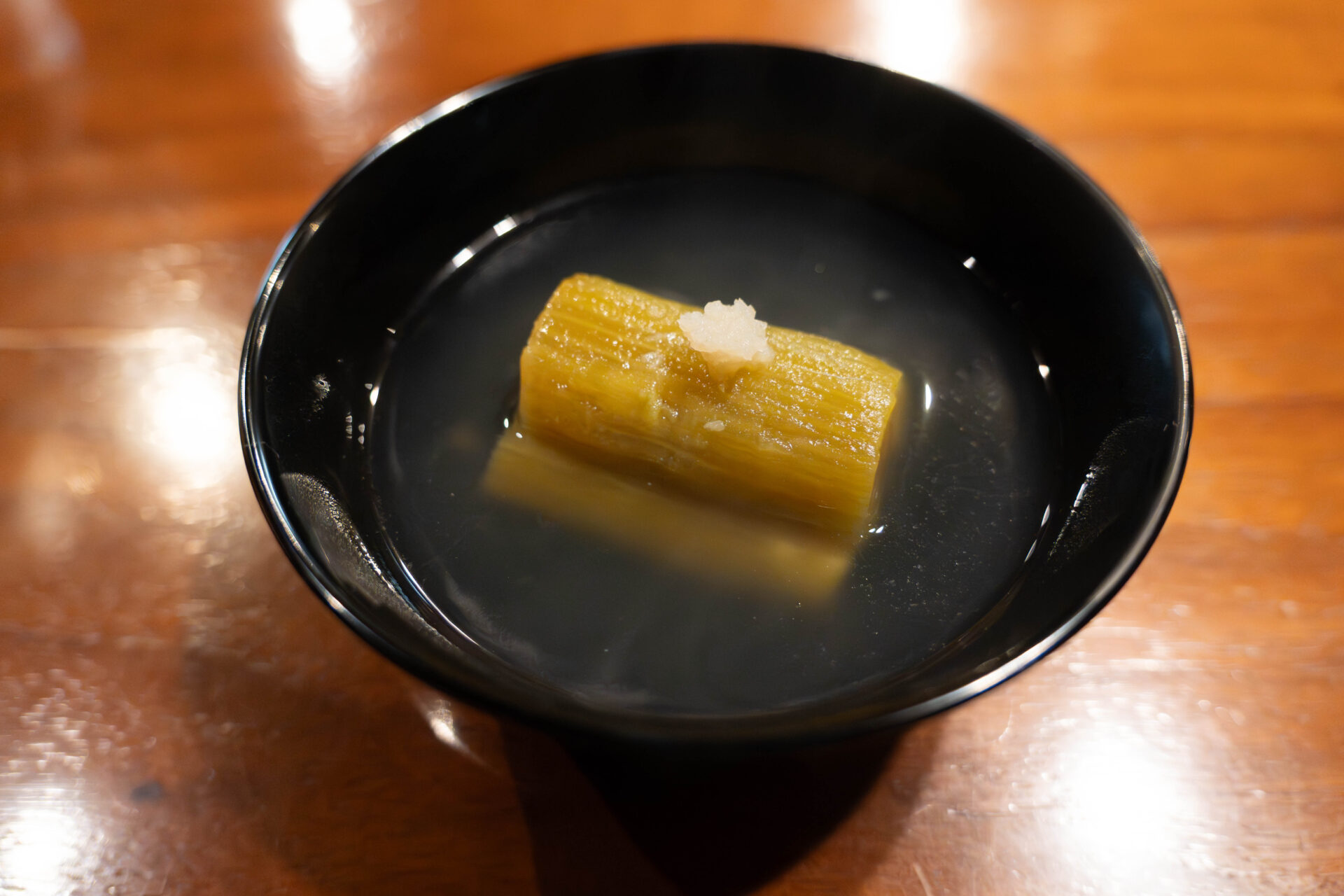 The broth, made carefully from bonito flakes, was crystal clear and aromatic, gently coating the tender eggplant.