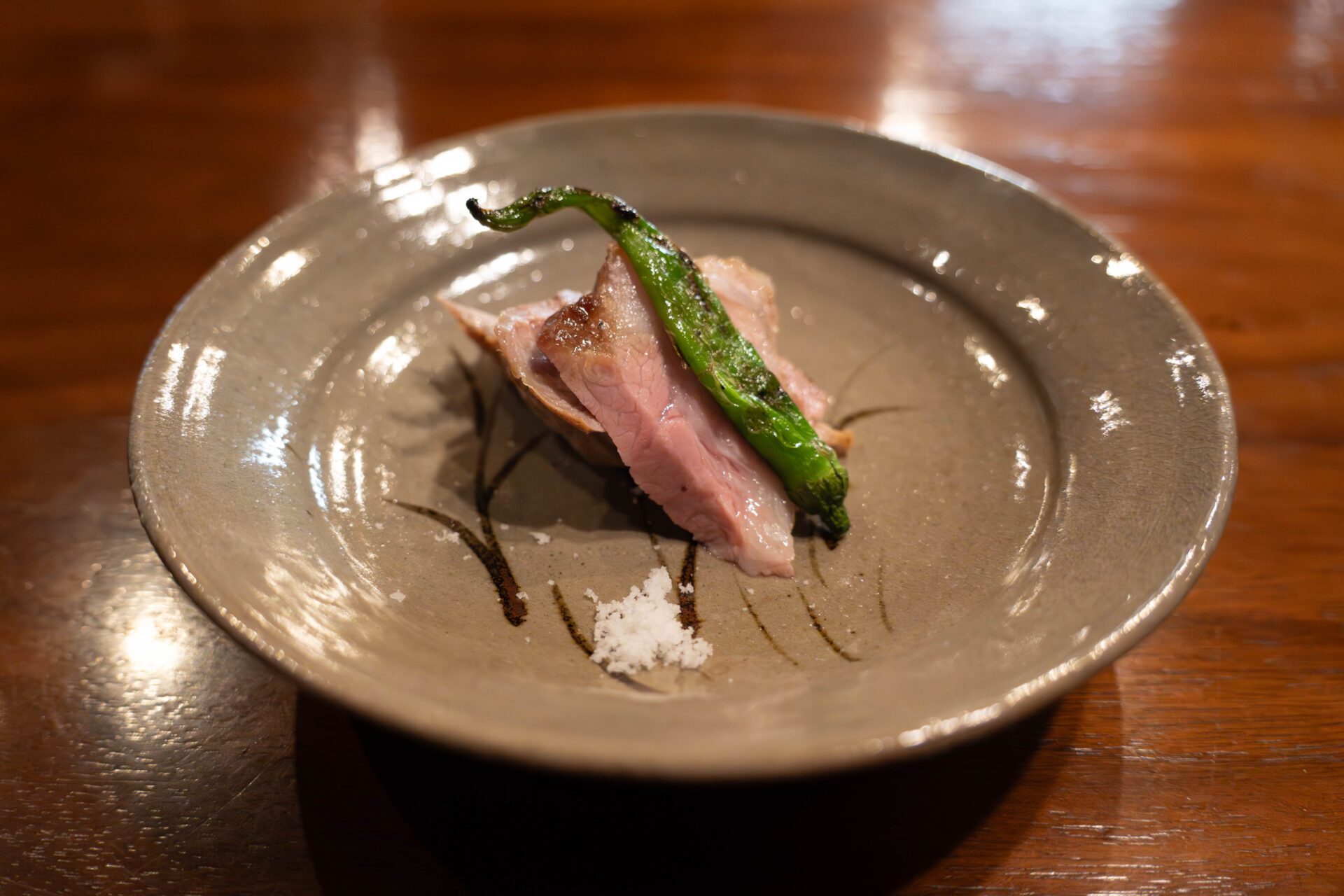 The slight bitterness of the shishito pepper garnish balanced the pork’s sweetness perfectly.