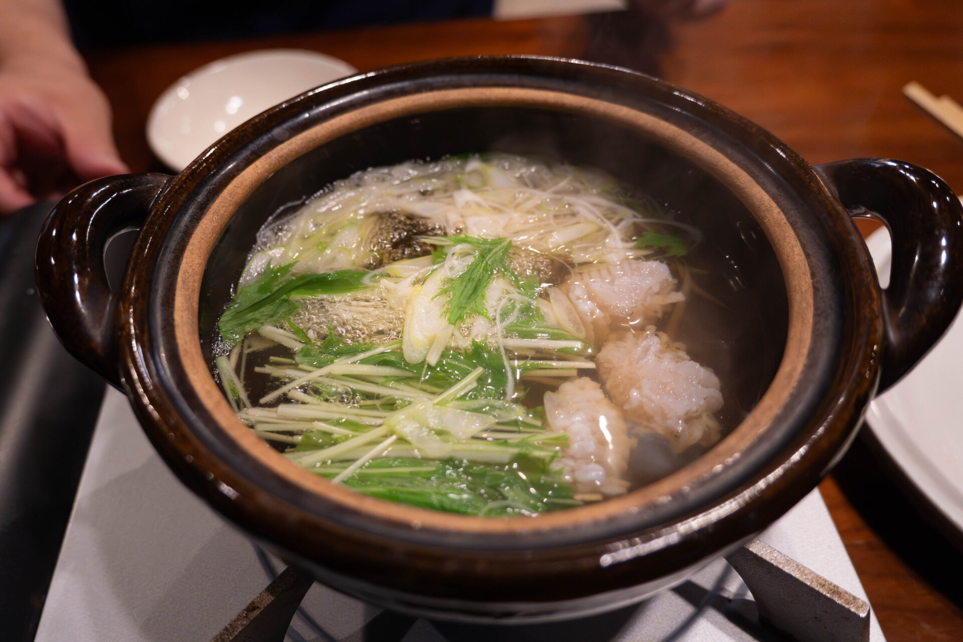 Seasonal vegetables such as mizuna added natural sweetness to the broth, which grew richer with every bite.