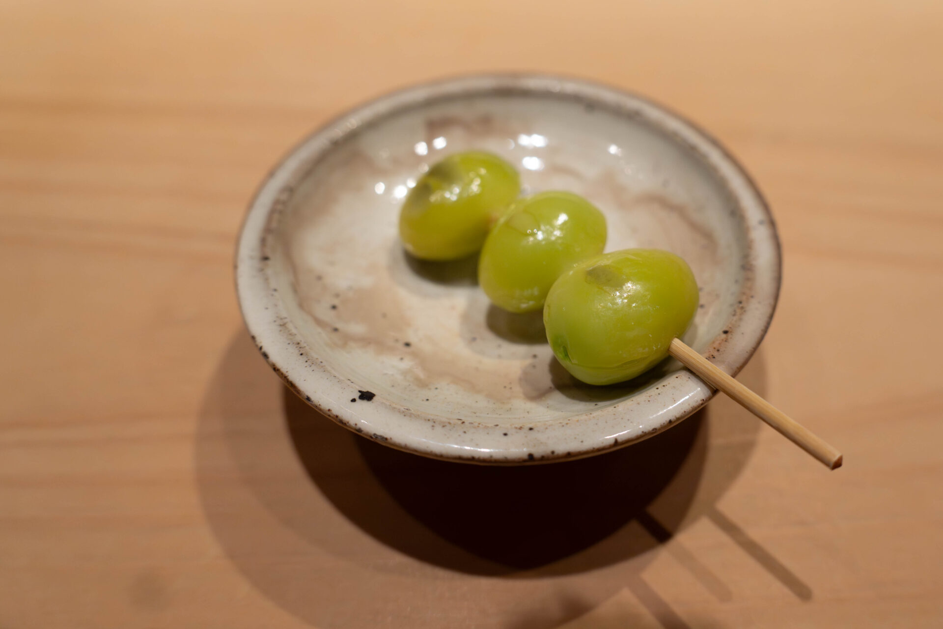 Following the opening cup of gyokuro tea came skewered ginkgo nuts.
