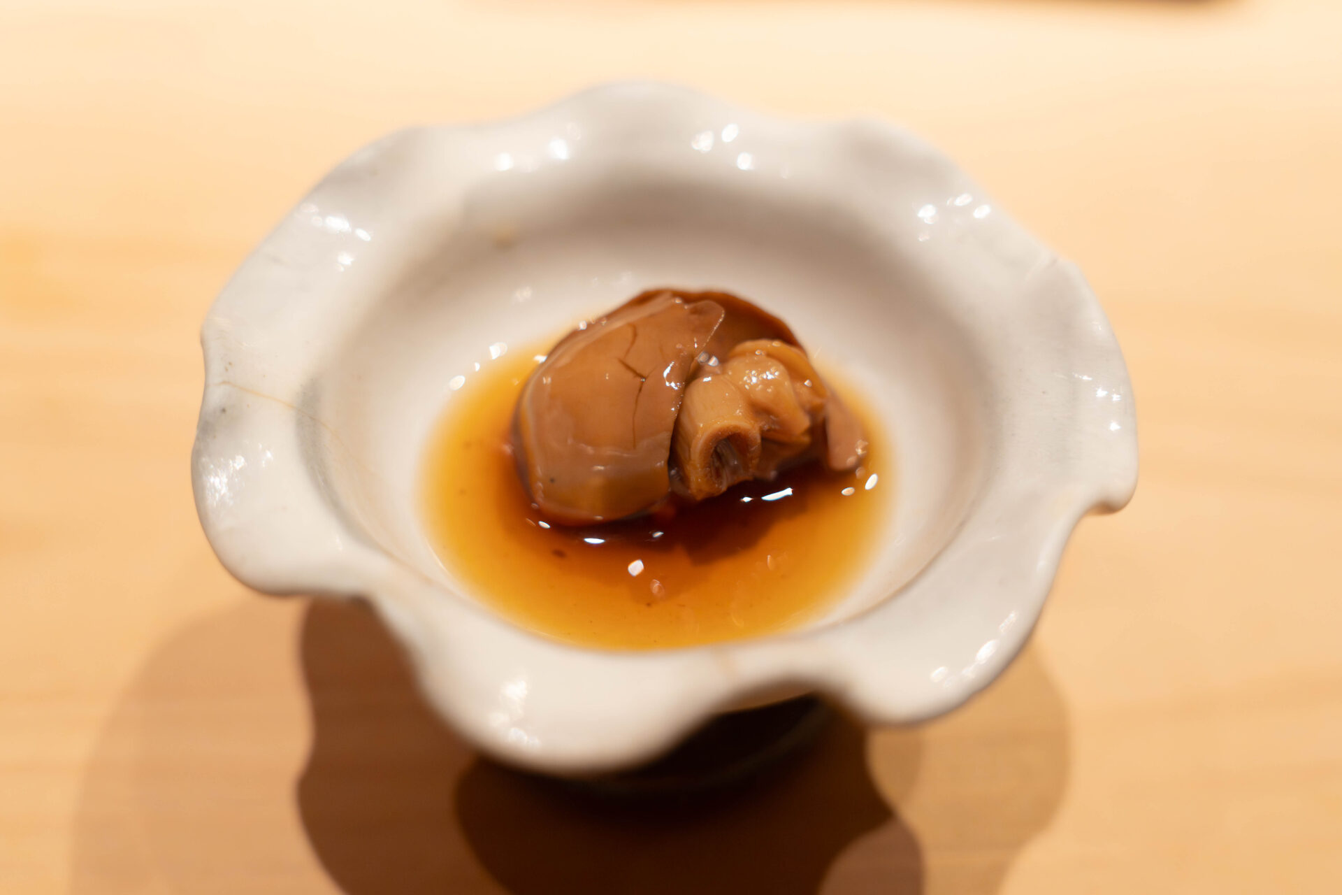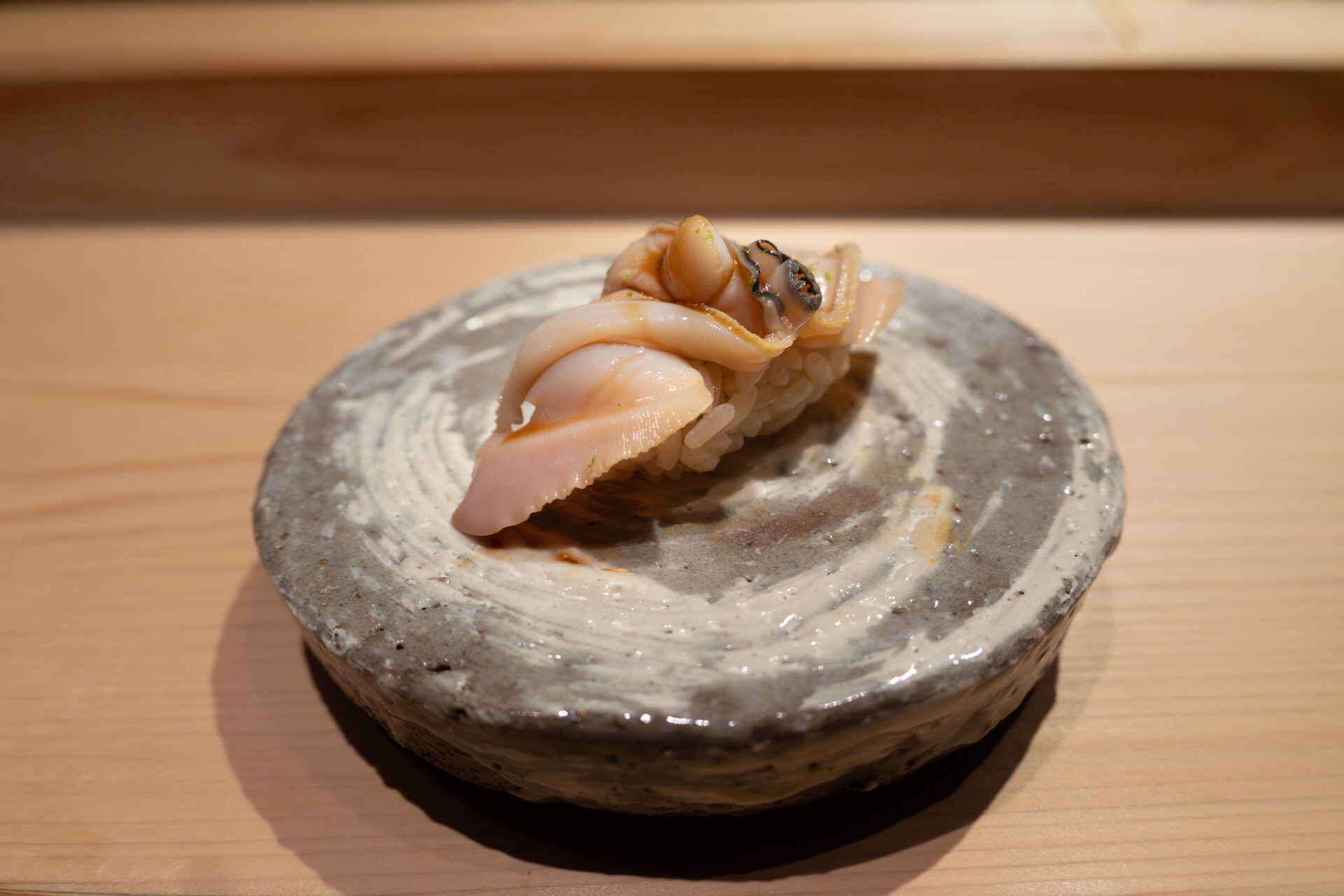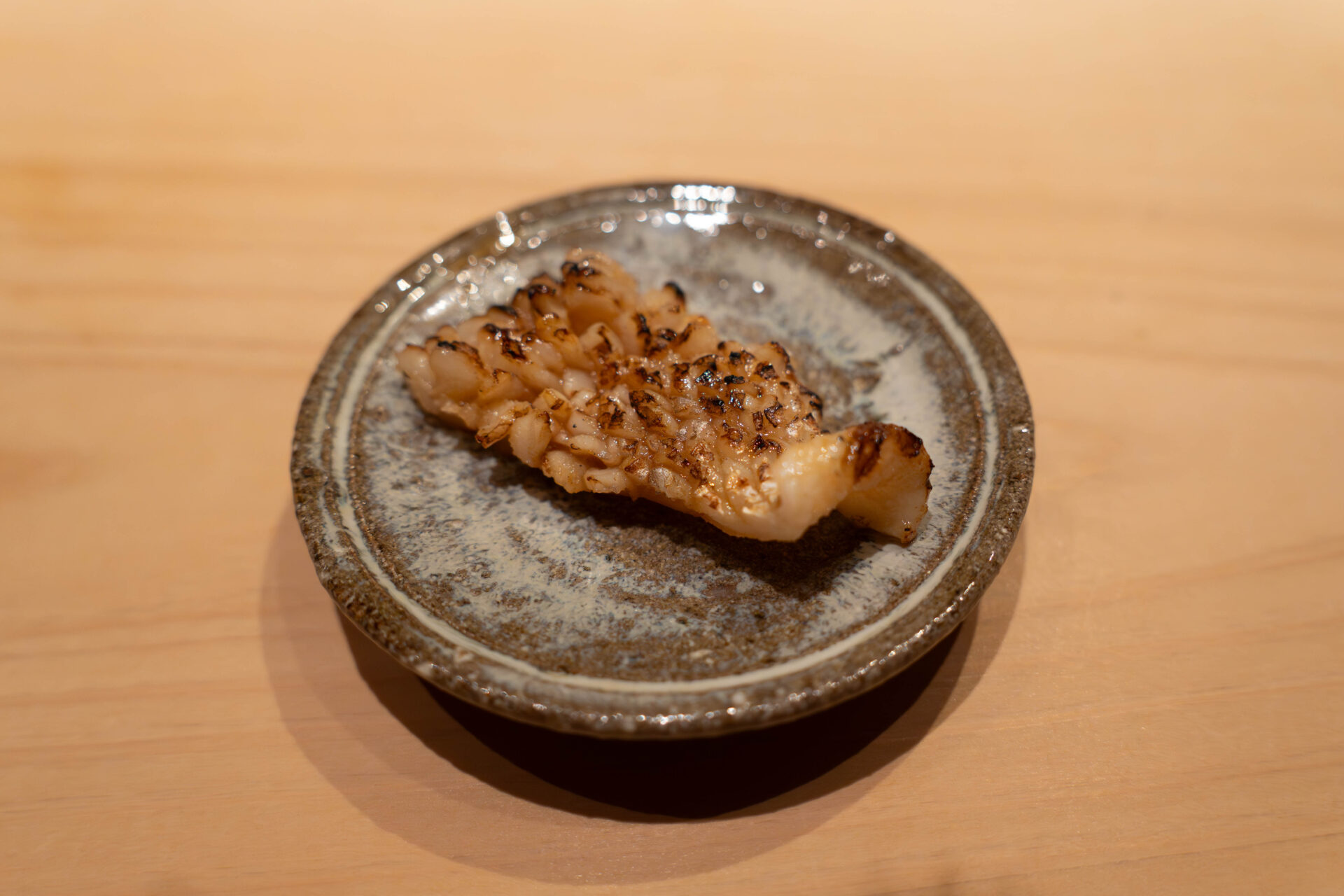 Finely scored, it offered both a clean bite and a gentle sweetness. The shari seasoned with red vinegar supported the squid’s delicacy, allowing the umami to bloom with each chew.