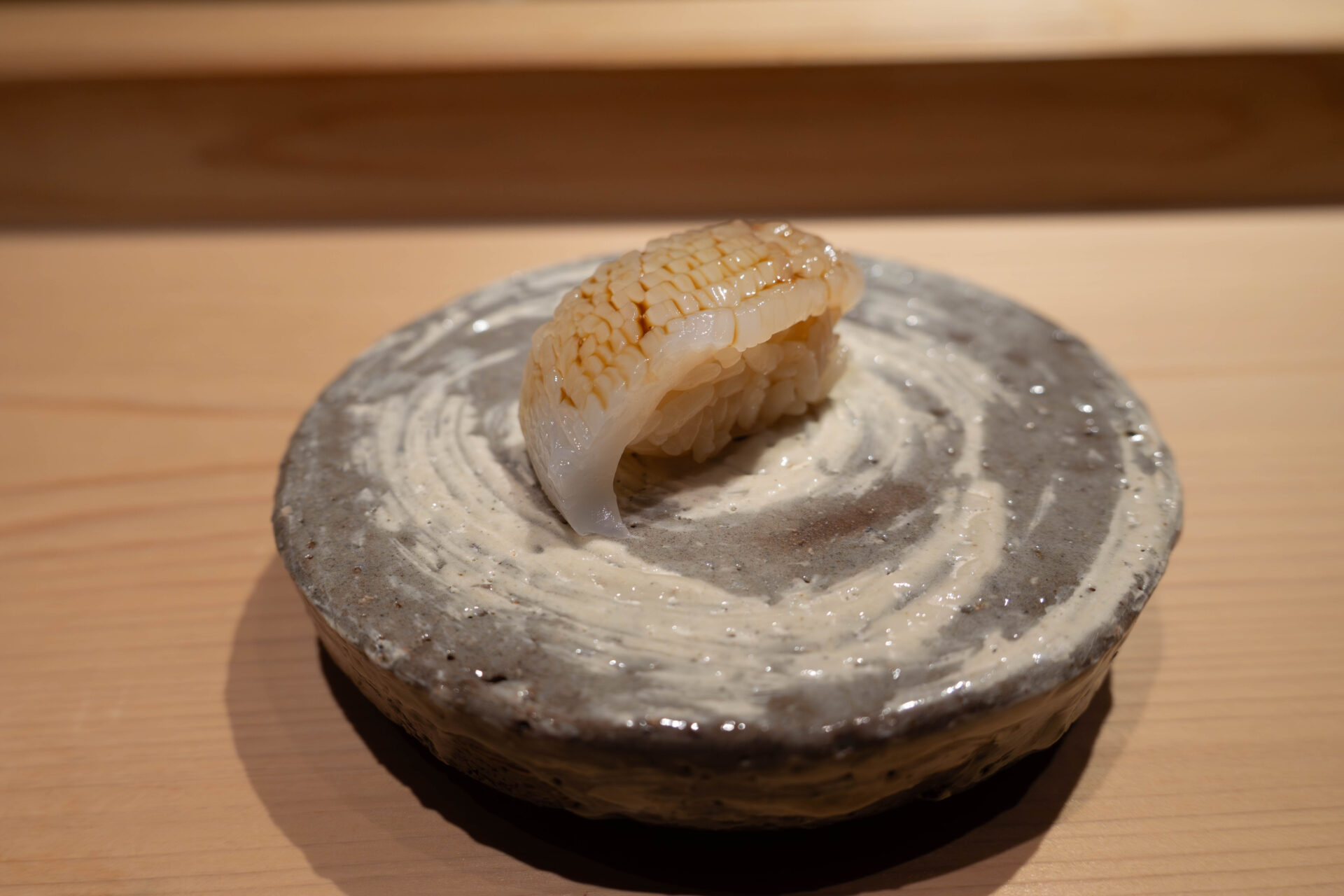 The first nigiri to mark the beginning of the sushi sequence was spear squid.