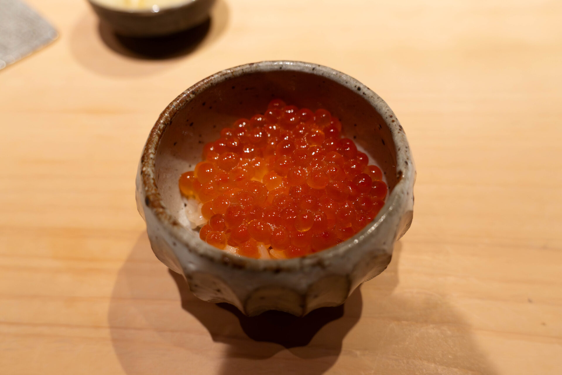 Its vivid orange flesh melted instantly, filling the mouth with luxurious sweetness and the scent of the sea. The shari’s gentle acidity tightened the flavor beautifully.
