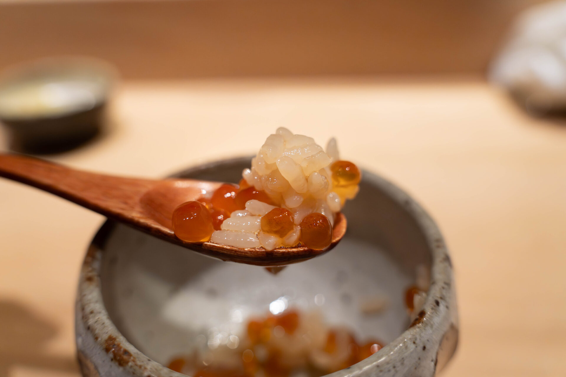 Each pearl burst on the tongue, releasing gentle salinity and oceanic umami. The red-vinegared rice beneath bound the flavors in harmony.