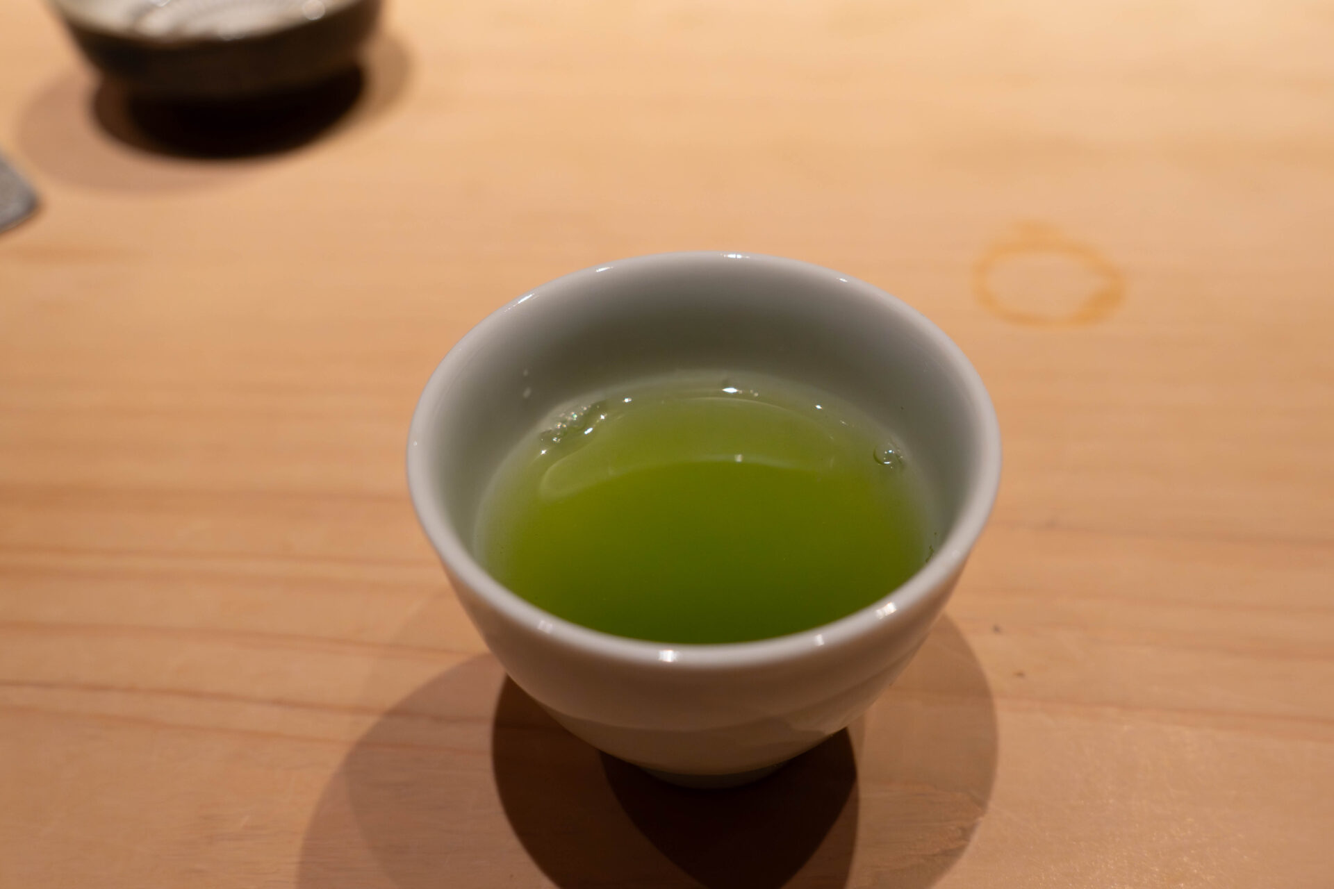 The meal ended with a vivid green tea whose fresh aroma enhanced the aftertaste.