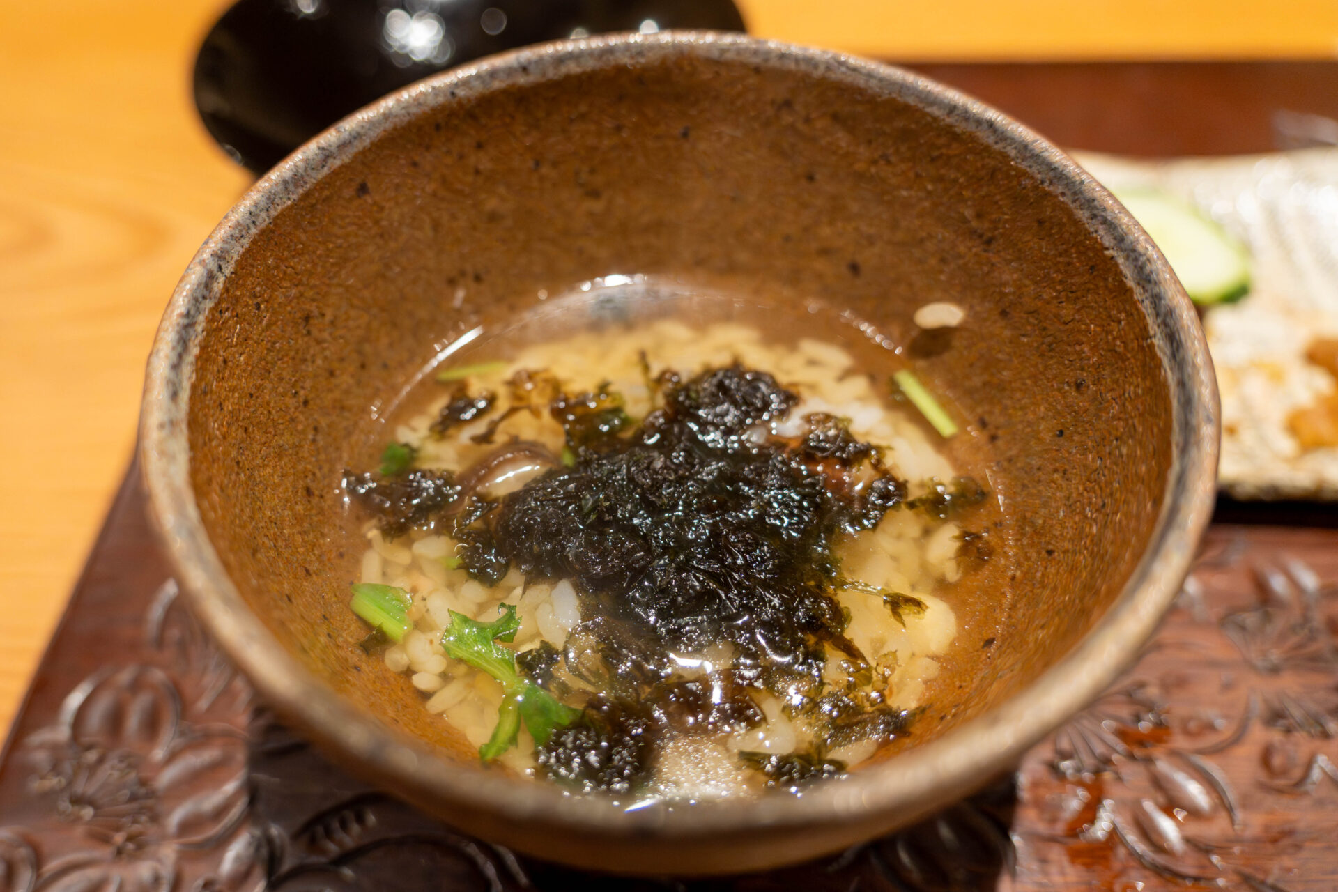 1杯目はそのままで、2杯目は出汁をかけてお茶漬けにして、異なる味わいを楽しむ趣向。
