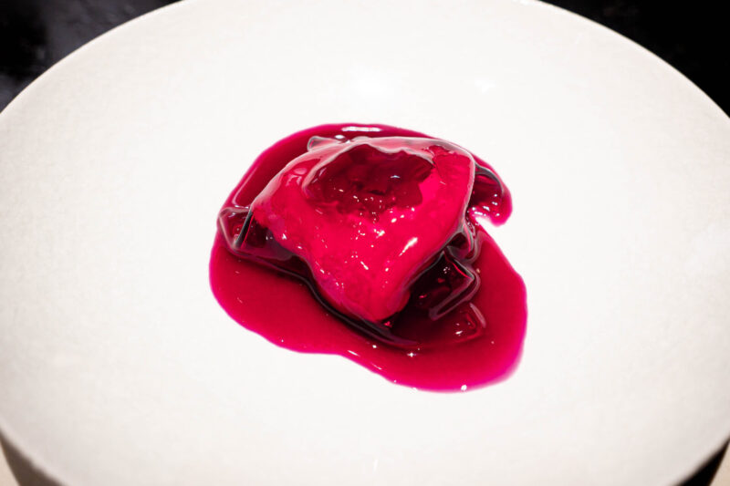 濃厚なあん肝に、奈良漬けの香りと甘みが重なり、さらにすいかの風味がアクセントになる、唯一無二の味わい。
