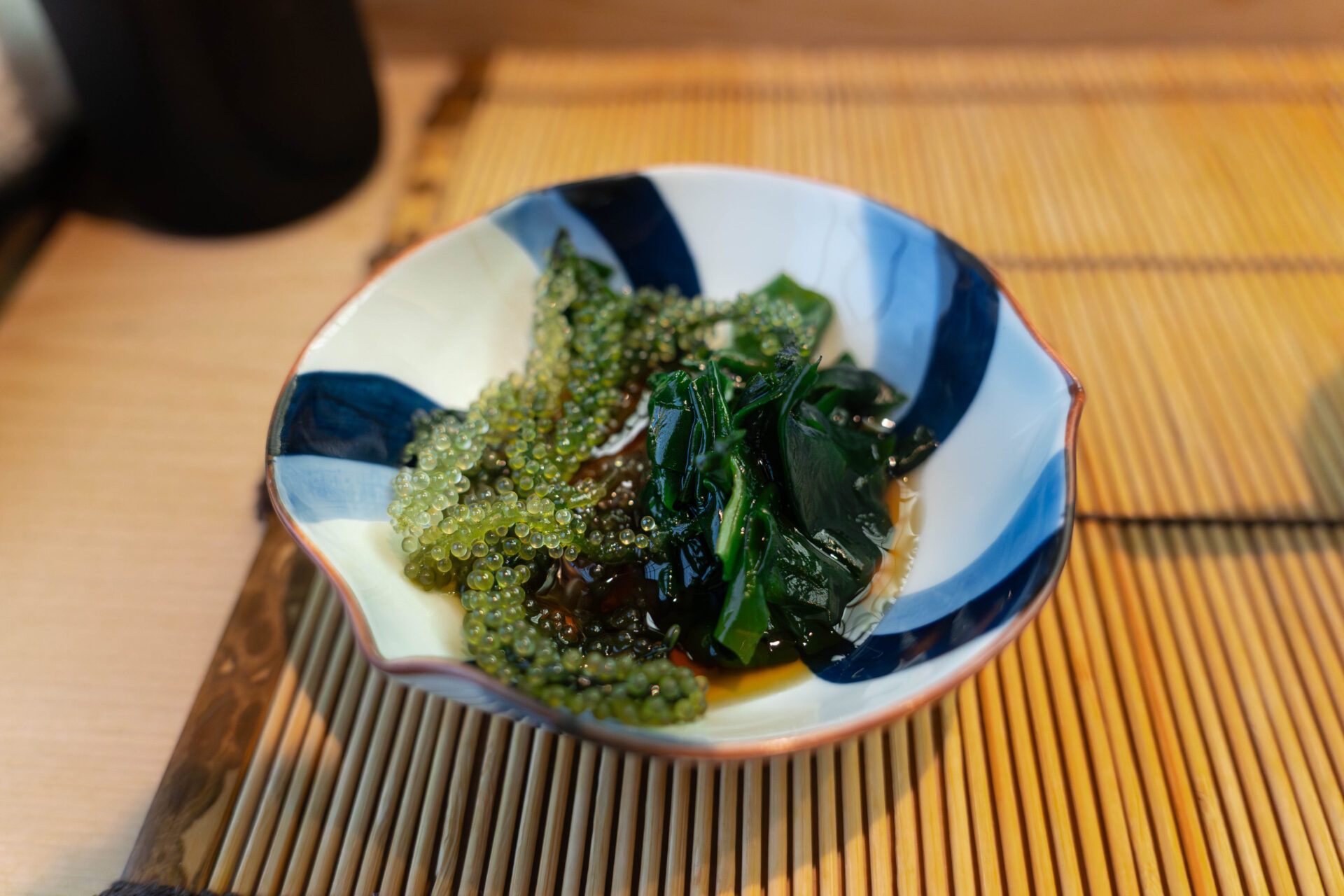 それぞれの素材が主張しながらも、昆布の旨みが全体をまとめ上げ、酒肴としても鮨の合間のアクセントとしても秀逸。滋味と食感が交錯する、多層的な味わいのひと皿でした。
