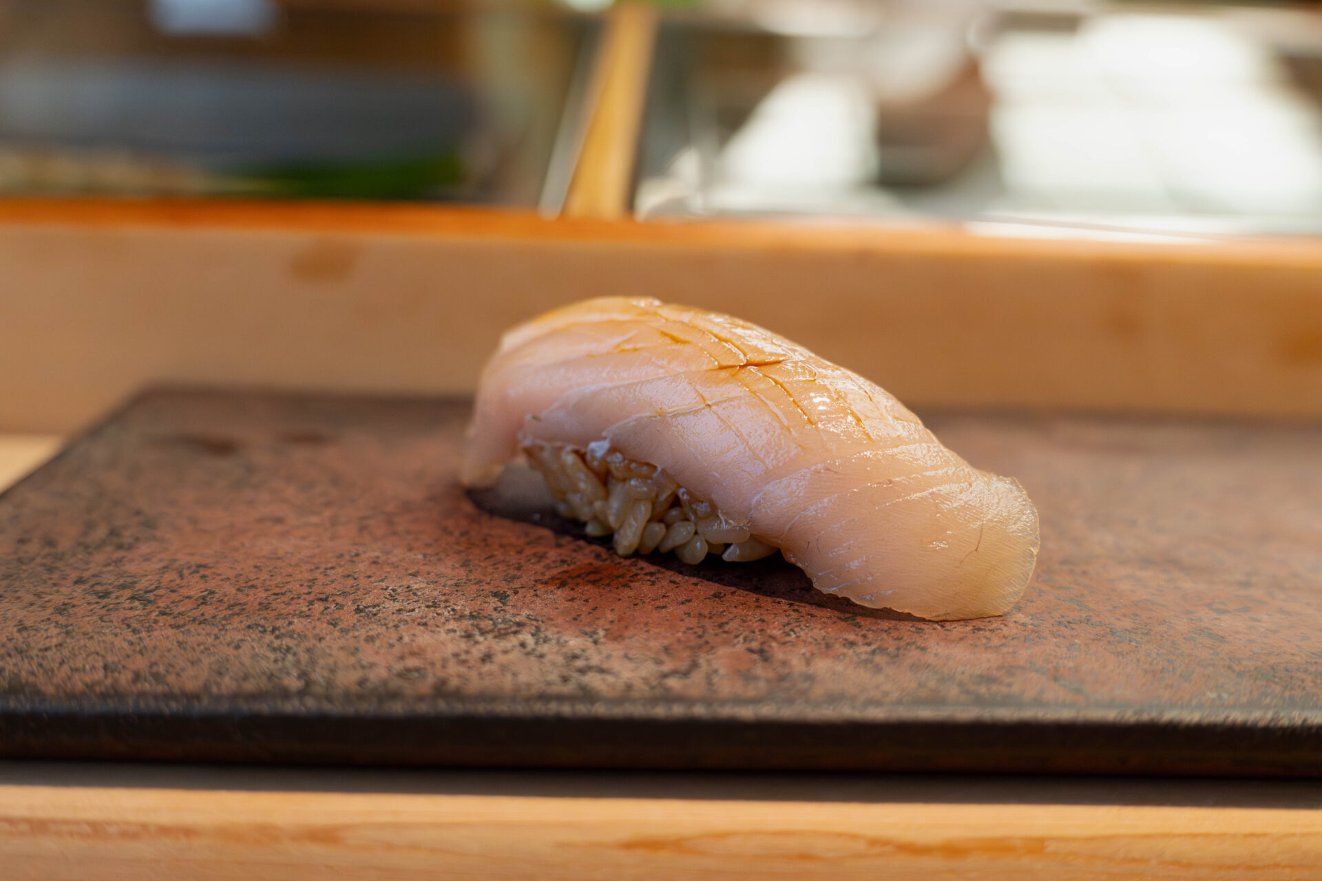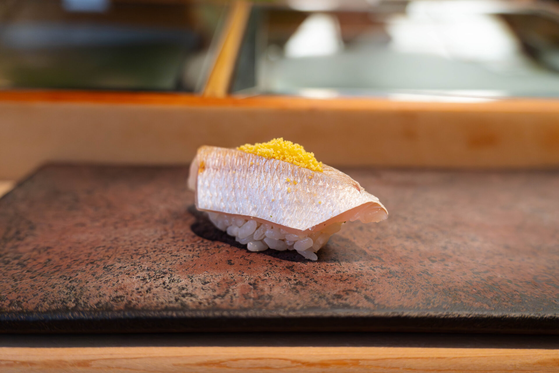 次に登場したのは、鰆の握り。ほんのりと脂がのった身には細かな包丁目が入り、舌に沿ってやわらかにほぐれていきます。
