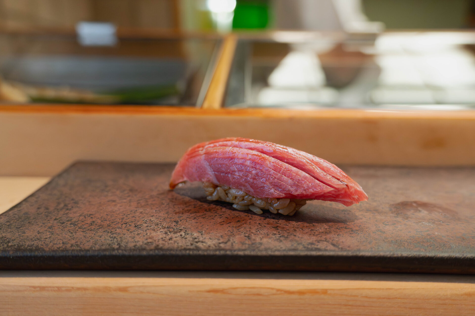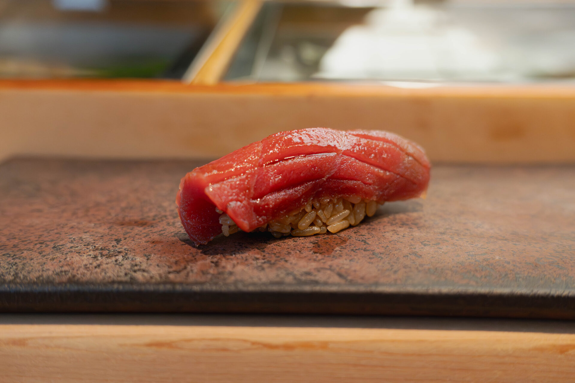 赤酢を効かせたシャリに重ねることで、脂の甘みがくどくならず、酸味が全体を引き締めてくれる。噛み進めるほどに濃厚さと清涼感が交錯し、赤身とはまた異なる鮪の奥行きを感じさせる一貫でした。
