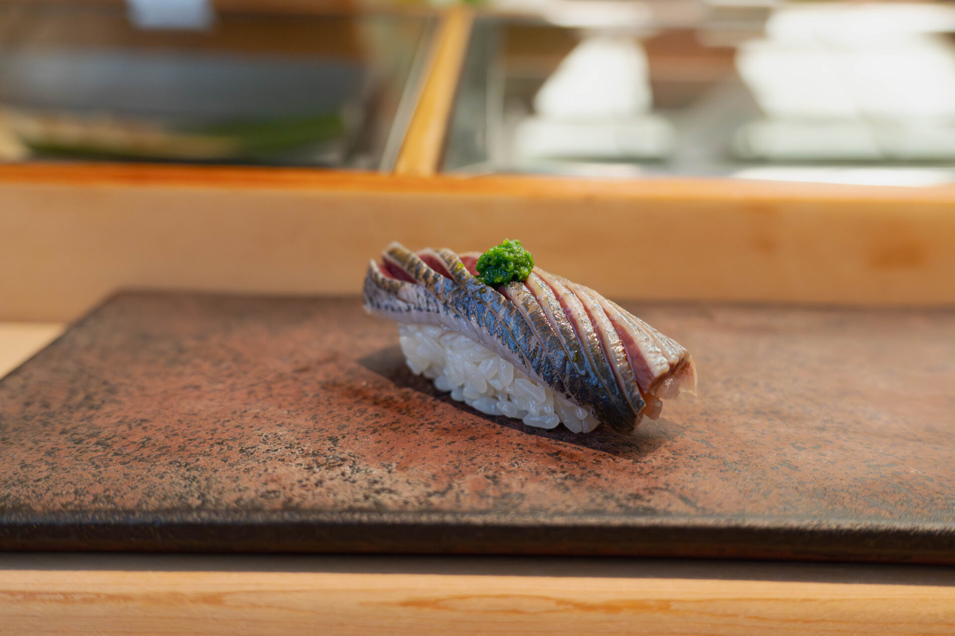 赤身や貝の力強さとは異なる、青魚ならではの瑞々しさが際立つ一貫でした。