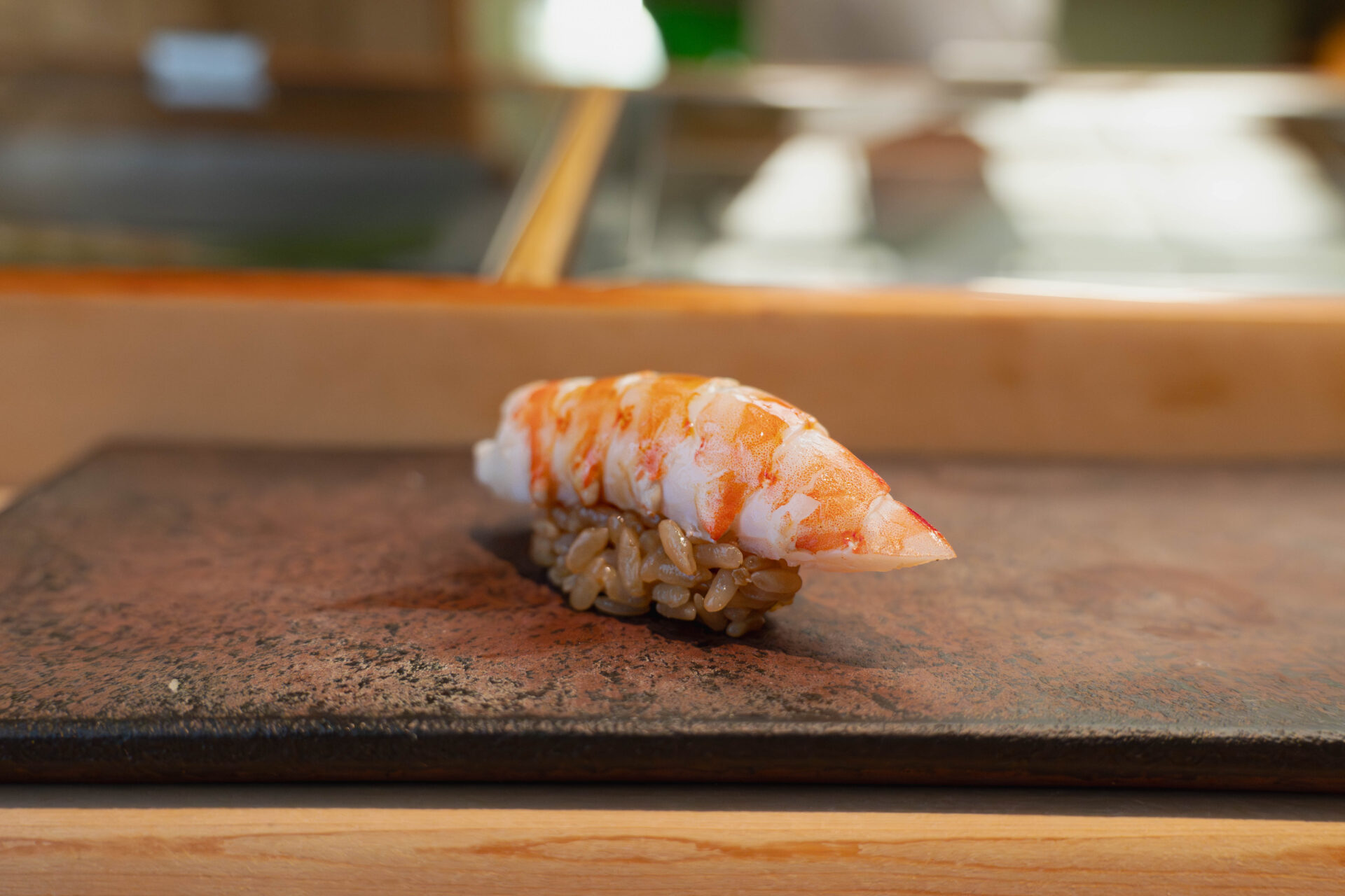 赤シャリの酸味とコクが、海老の旨みを一層引き立て、後味にはほんのりとした余韻が残る一貫。
