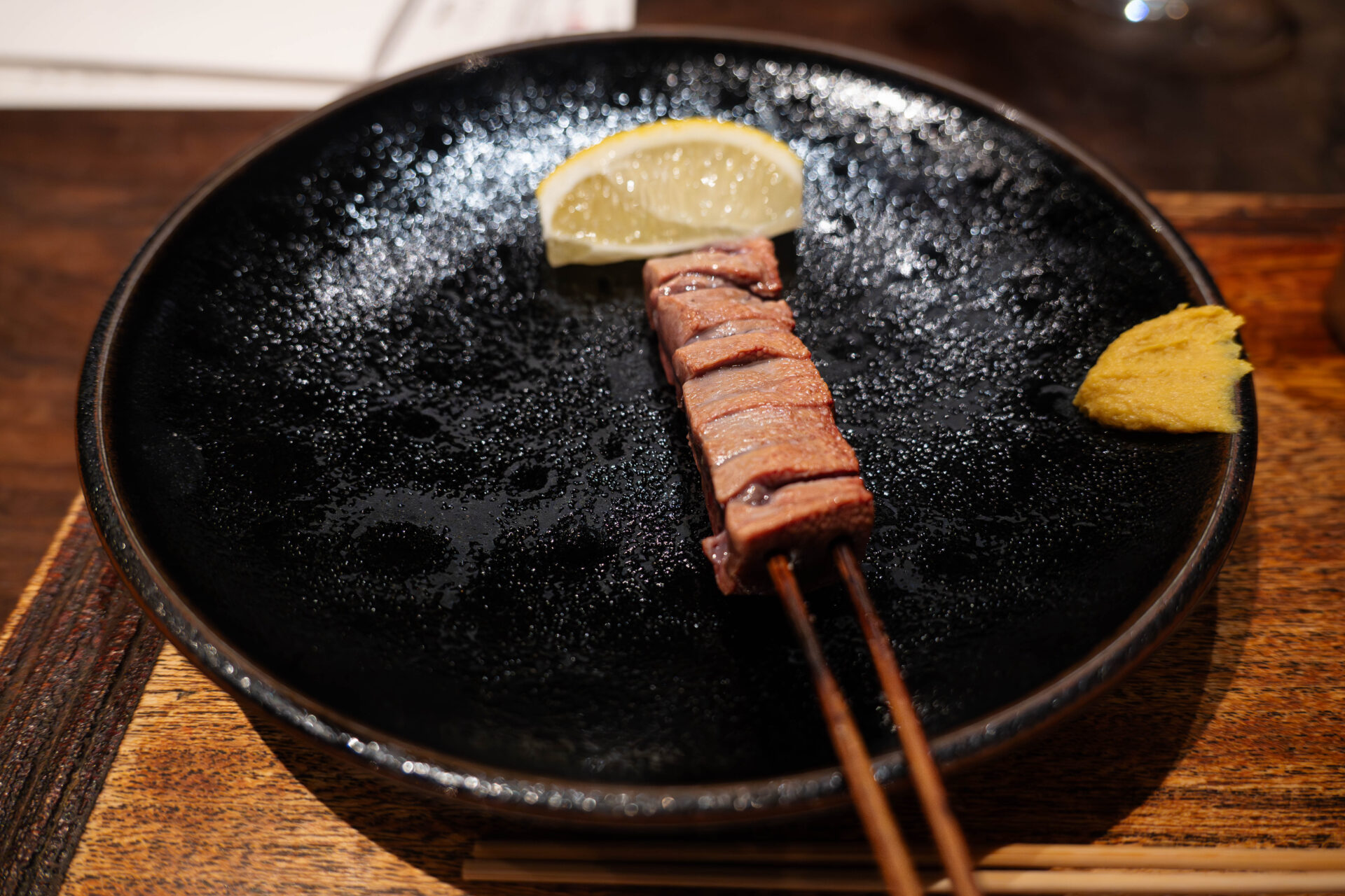 添えられた辛子と にんにくおろし を合わせると、肉の風味がぐっと引き締まり、脂の重さを感じさせずに最後まで食べ進められる。串焼き中心の流れの中で、肉の奥深さを存分に堪能できる一皿でした。